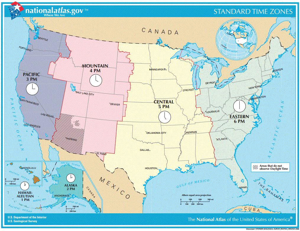 Estados unidos mapa de fuso horário