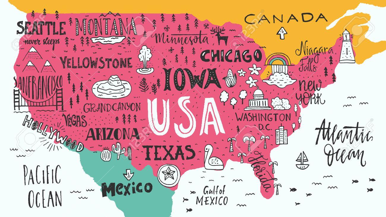 EUA atrações do mapa. NOS atrações do mapa (América do Norte Américas) para imprimir. NOS atrações do mapa (América do Norte Américas) para download.